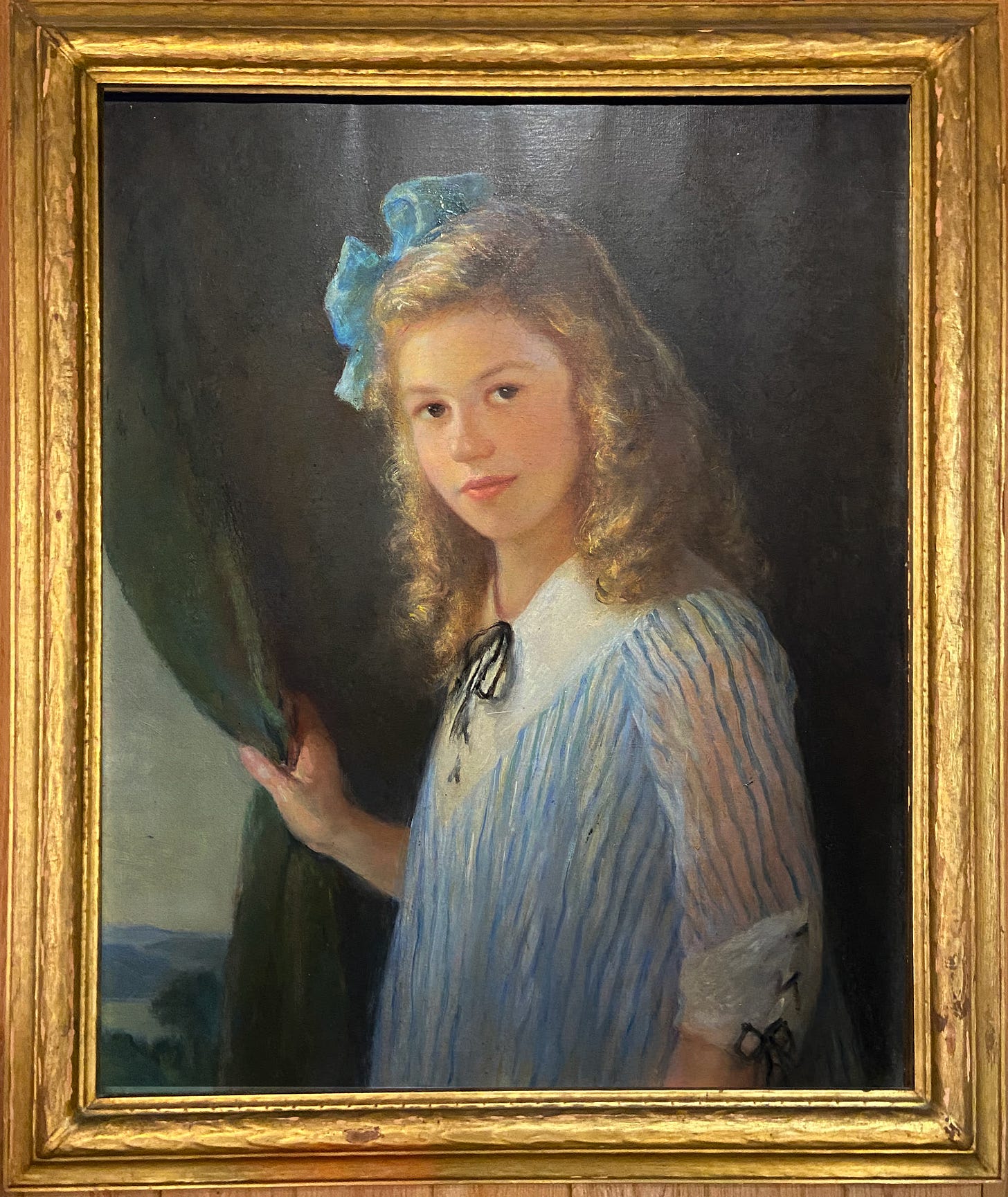 The memoirs touch much more briefly on the passing one year later of Alice Tanzer, the couple’s angelic third child who died of influenza in 1919 at age eight. This devastating loss must have compounded the family’s loss of Walter just a few months earlier. A tragedy even sadder than Walter’s, too sad to talk about I suppose, but that lives on in a large life-size oil painting they had commissioned after she died, which ended up at my aunt Alice’s house, where even casual viewers without the background tend to agree it’s a haunted portrait.