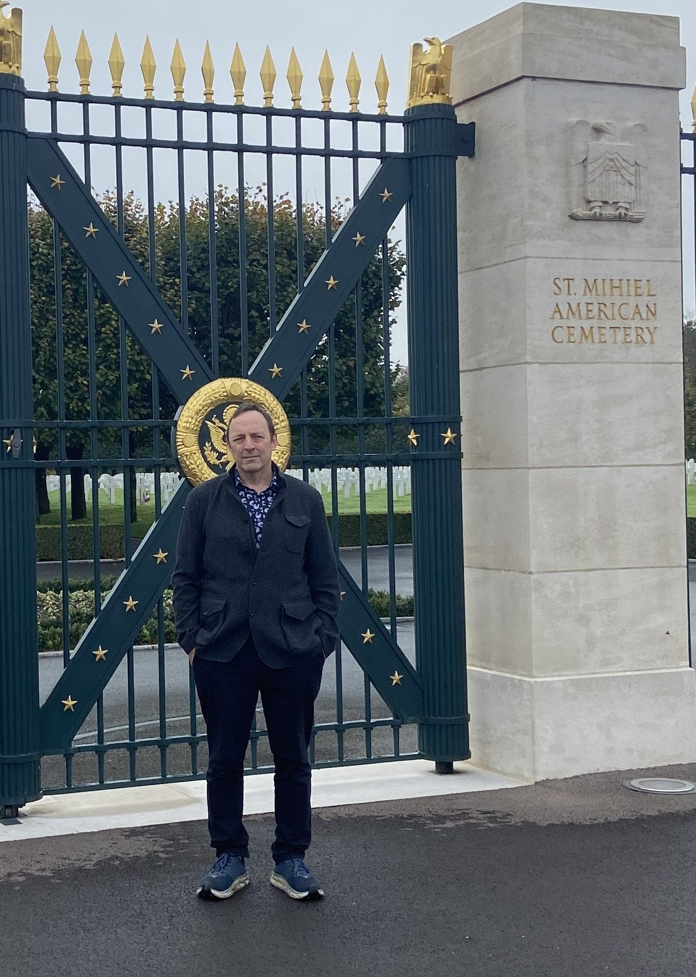 My dissociation at my dad’s inurnment came from knowing him better than the people now caring for his grave; pulling up to the American cemetery at St. Mihiel the odd feeling was rooted in not having known Walter at all, not having heard of him in family lore, and having little idea of what he might have thought of it all. I imagined we might be in and out of the cemetery fairly quickly, given that I felt hardly more connection to the buried soldiers there than an average American tourist, albeit with a little recent reading under my belt on the absurd catastrophe of WWI.